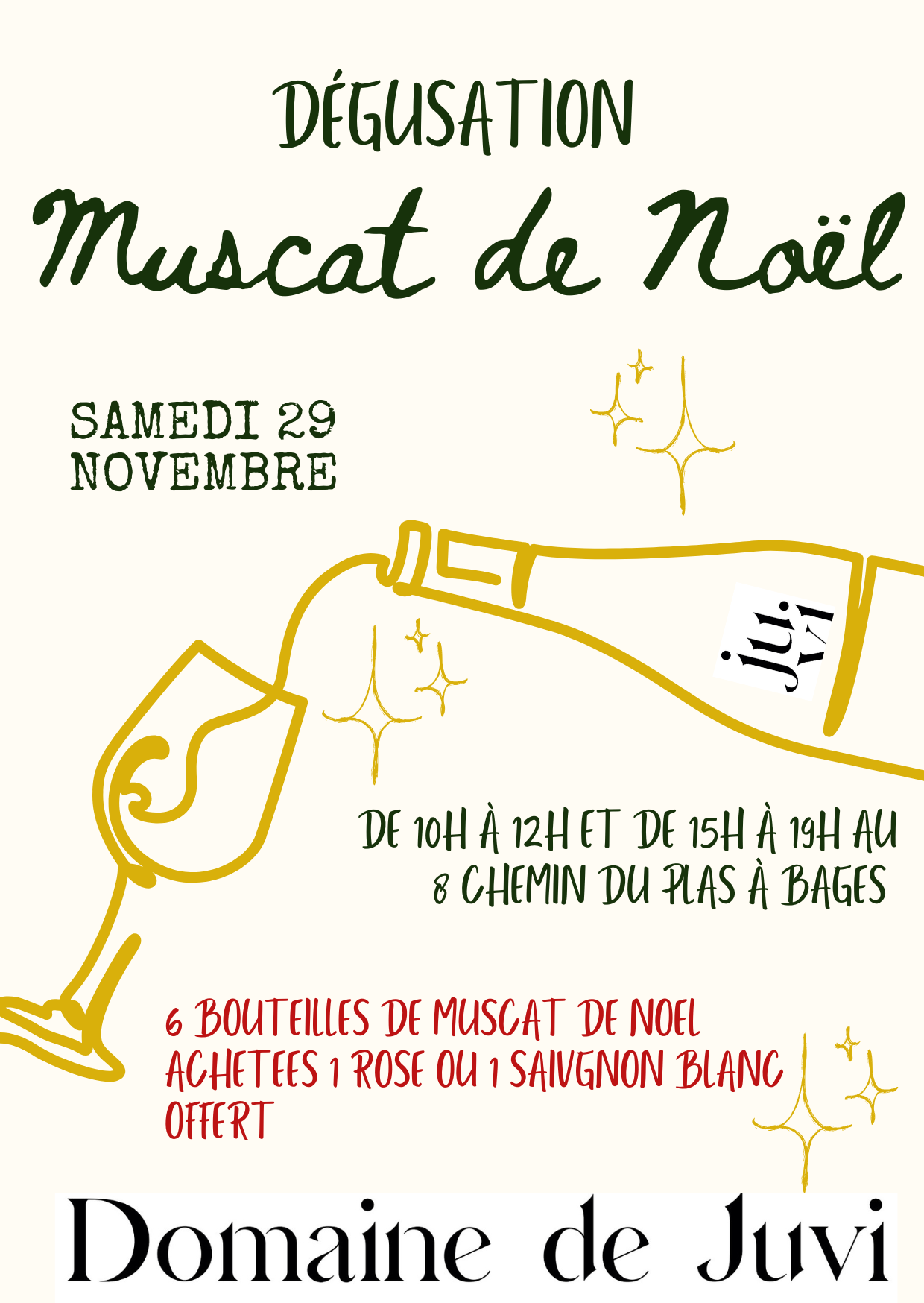 Nous vous donnons rdv le 28 novembre dès 18h30 pour déguster le Muscat de Noël 2025. Entrée 5€ avec 2 verres offerts. Visite du Père Noël Tomb...